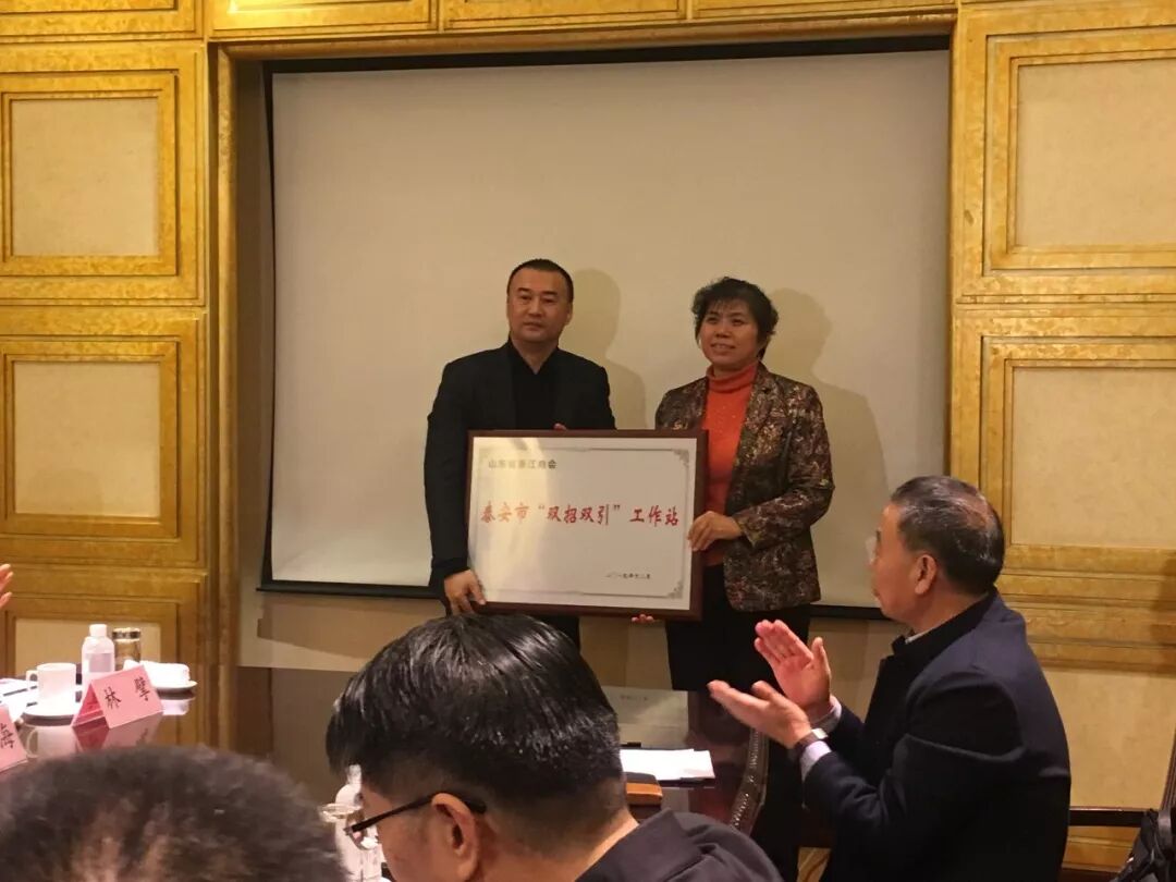 12月30日,泰安市人民政府、山东省浙江商会在泰安东尊华美达召开“浙商走进泰安恳谈会”。会上签订了“双招双引”战略框架协议,为山东省浙江商会泰安市“双招双引”工作站成立揭牌。