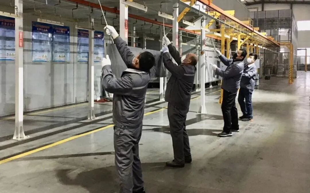 万海集团在严格按照政府及上级主管部门要求,积极主动做好疫情防控的同时,2月11日复工严格开展各项必要的准备工作,2月21日复产。各车间对所属的设备设施进行擦拭、调整,对供电系统、供气系统进行逐项排查,全力确保各类钣金设备及装配生产线安全平稳投运。